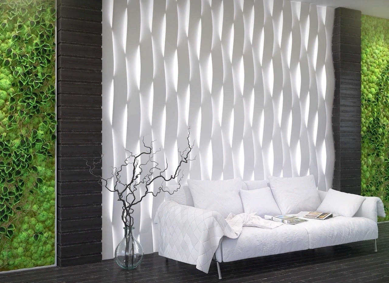 Светодиодная подсветка добавляет изюминку, создавая игру тени и света на каждом изгибе. В свою очередь впечатляет своей красотой и добавляет глубину пространству. Эти панели могут быть использованы в любом интерьере и станут изюминкой вашего пространства.