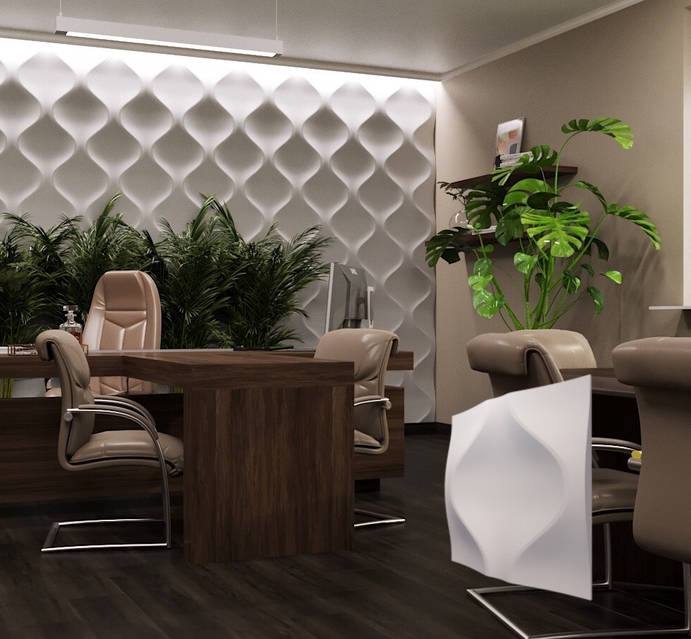 3D панель из гипса «Мягкий ромб» сочетает в себе плавные и мягкие линии. Они напоминают ромб со сглаженными гранями. Эта панель отлично впишется в интерьер гостиной, спальни, магазина, шоу-рума, салонов красоты. Добавят стиль и элегантность вашему пространству.