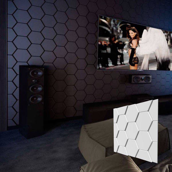 3D панели «Черепица» обладают рисунком, напоминающим соты, что делает их универсальными для использования в различных стилях интерьера. Эти панели прекрасно подойдут как для отделки стен, так и для потолков, добавляя современный штрих в любое помещение, особенно в стиле хай-тек. С их помощью можно создать стильный и эффектный дизайн.