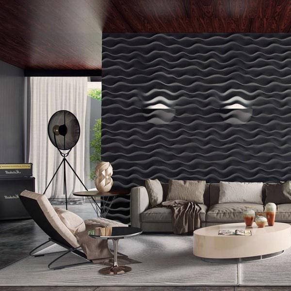 Гипсовые 3D панели «Эфир» созданы для воплощения волшебной атмосферы в любом помещении, будь то жилое или коммерческое пространство. Объемный узор панелей состоит из воздушных и плавных линий, которые придают интерьеру легкость и простоту. Эти панели прекрасно комбинируются с точечной подсветкой, создавая мягкий и уютный светотеневой эффект.