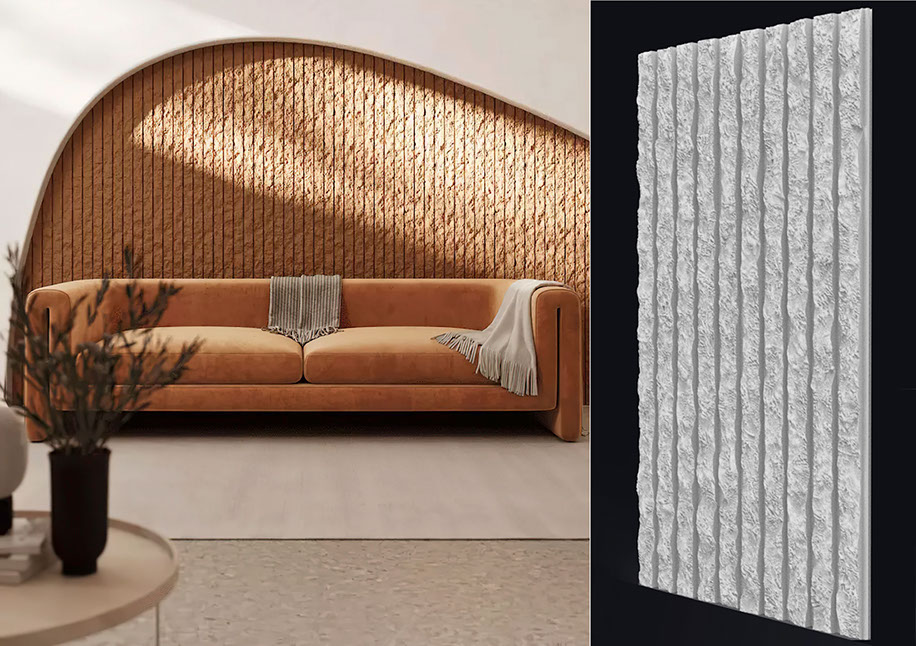 Преобразите ваши пространства с гипсовыми 3D панелями «Скала-рейка» и позвольте природе войти в ваш дом в современных обводах.