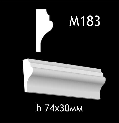 Преобразите ваш интерьер с гипсовым молдингом М183 от AGips! Этот стильный декоративный элемент, с высотой  74 мм и шириной 30 мм, станет идеальным дополнением для любого помещения, придавая ему элегантность и неповторимый стиль. Благодаря гладкой поверхности и утонченным характеристикам, молдинг M183 не только подчеркивает общий дизайн, но и создает атмосферу роскоши и гармонии.