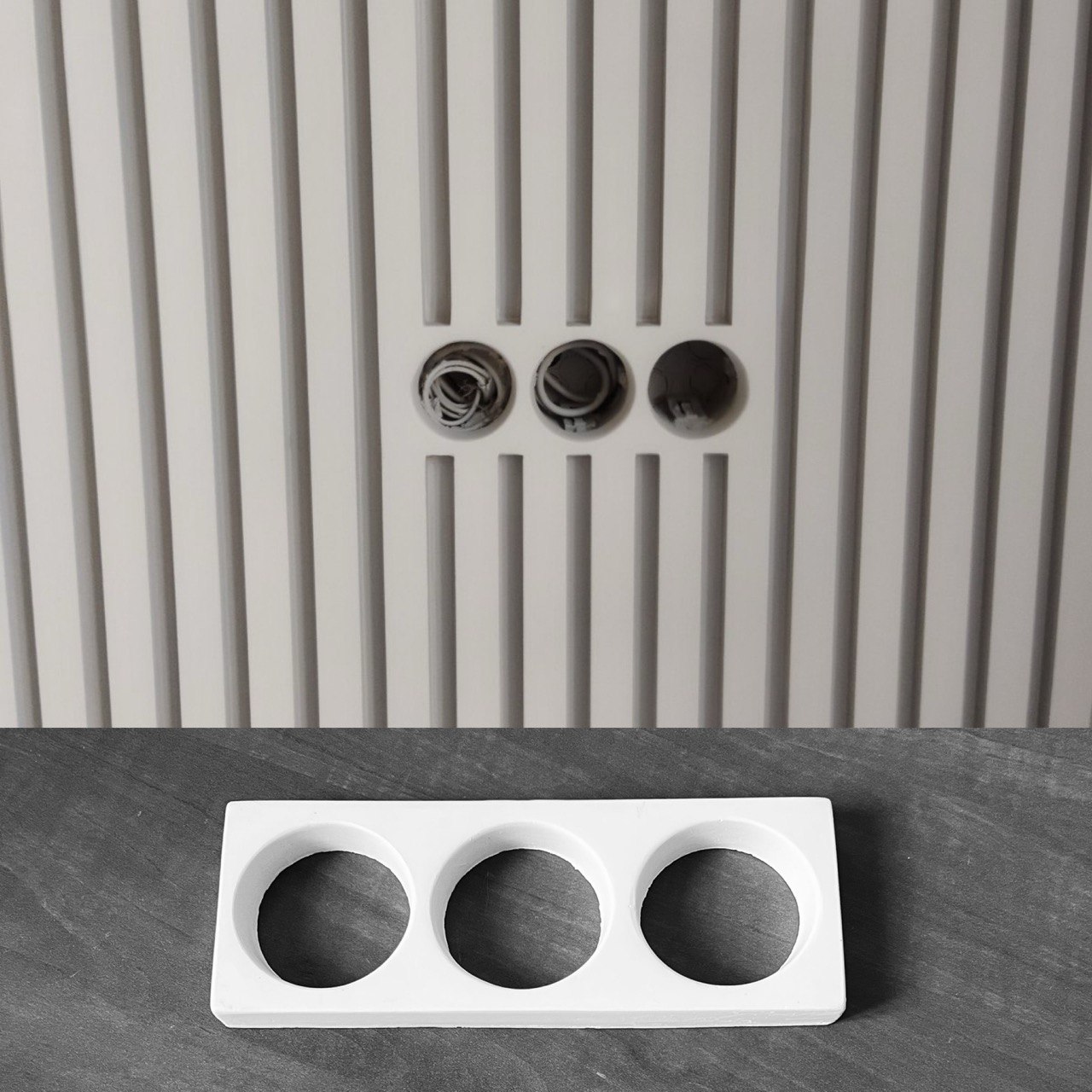Гипсовый подрозетник на три отверстия – декоративный элемент, идеально подходящий для монтажа гипсовых 3D панелей, плитки и кирпича. Этот важный аксессуар не только функционален, но и служит важным декоративным решением эстетического монтажа розеток и выключателей. Делая внешний вид аккуратнее.
