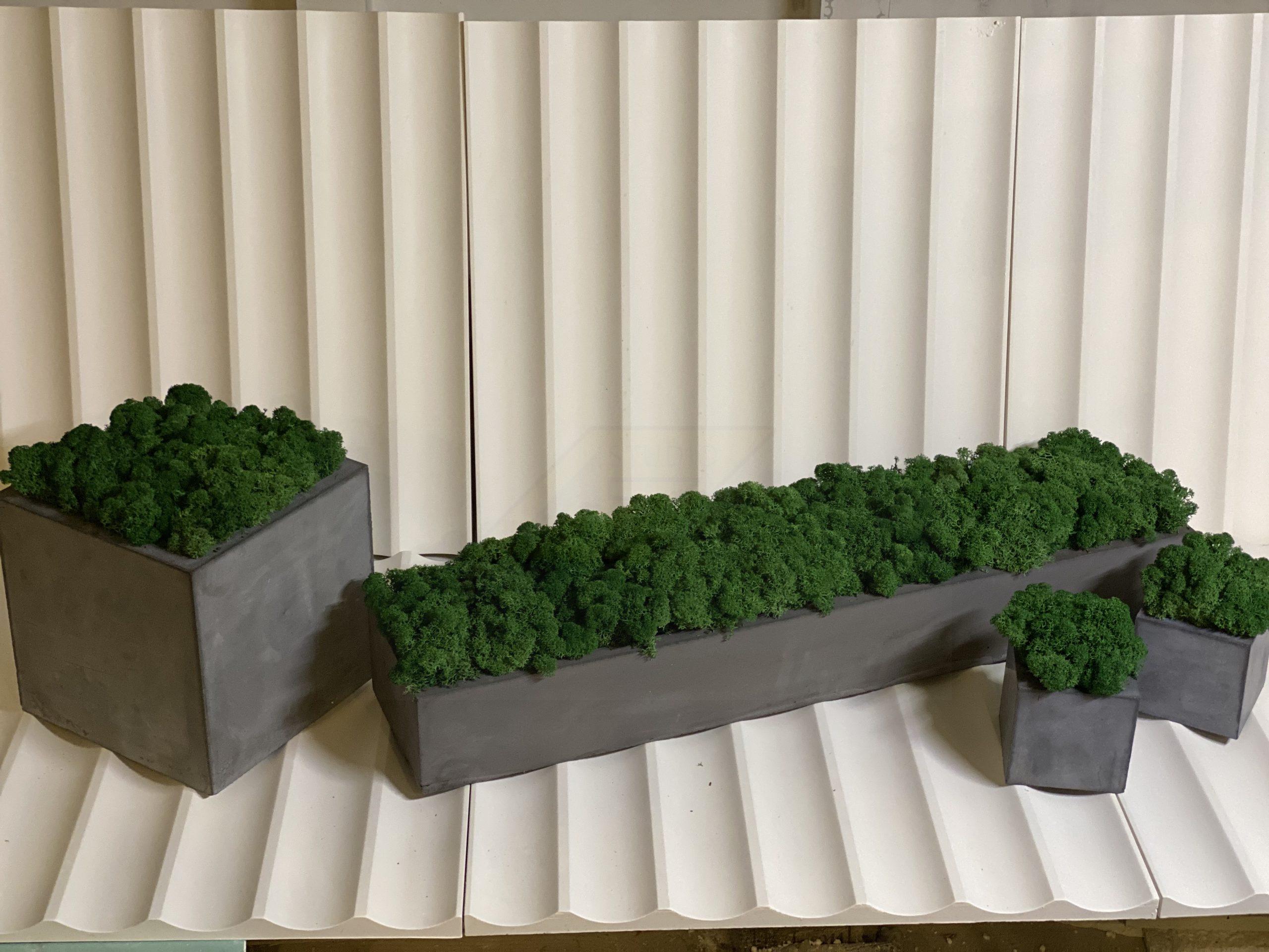 Кашпо из гипса с скандинавским мхом ягель Gray 500х70х50мм