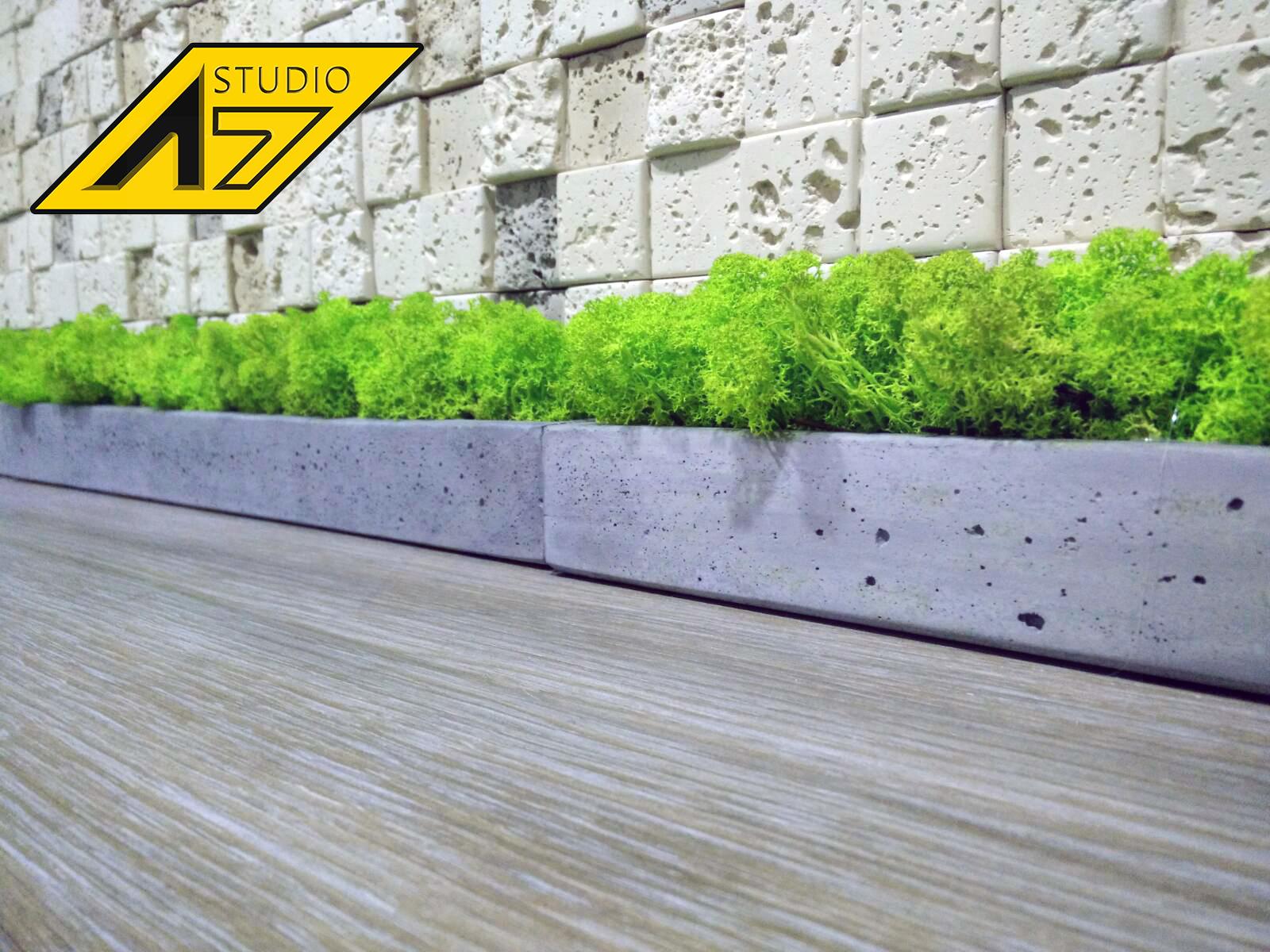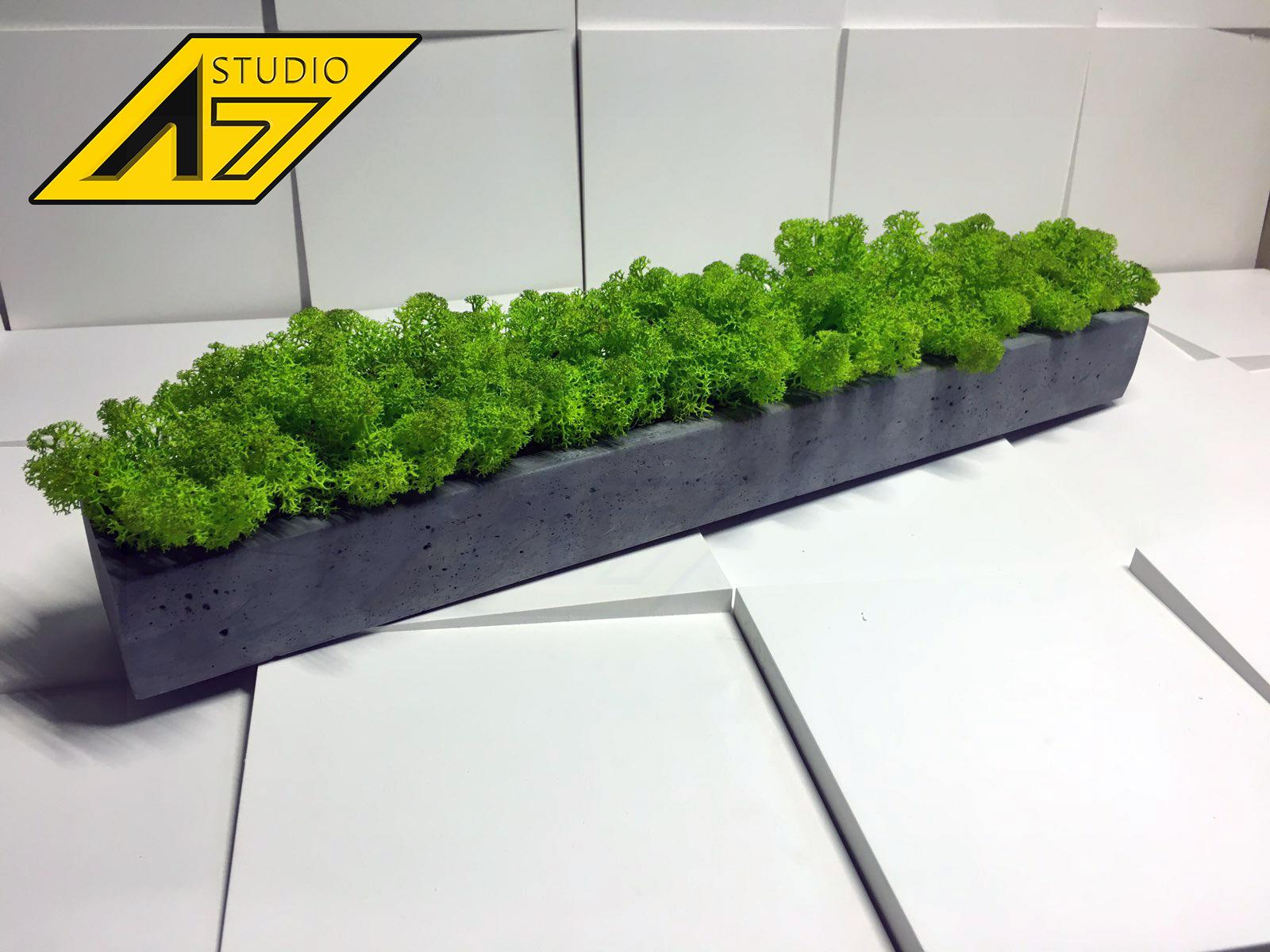 Бетонное кашпо с стабилизированным мхом 700х150х90мм