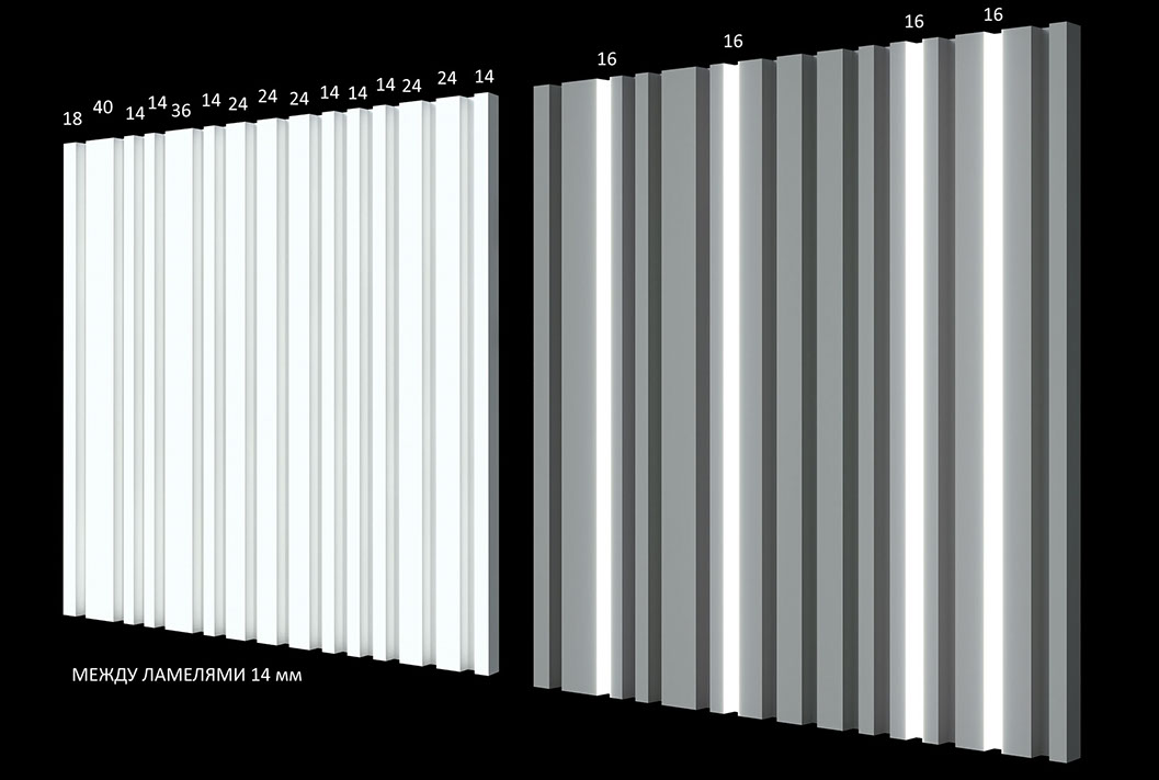 • Расстояние между выступающими ламелями 16мм.