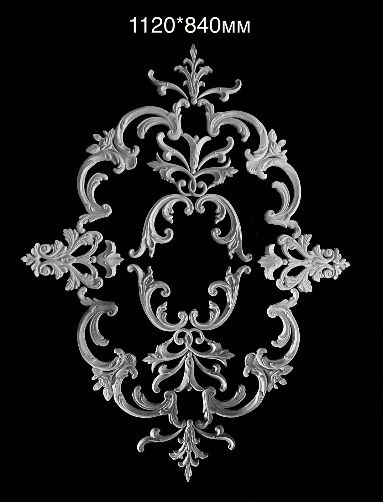 Розетка потолочная из гипса Р-13 размер 1120х840 мм — это изысканный элемент декора, который, безусловно, привнесет классический шарм в ваш интерьер. В первую очередь, данная розетка с круглой формы гармонично вписывается в различные стили, включая классику, арт-деко, модерн, эклектику и даже минимализм. Таким образом, она идеально подходит для создания уникальной атмосферы в любом помещении.