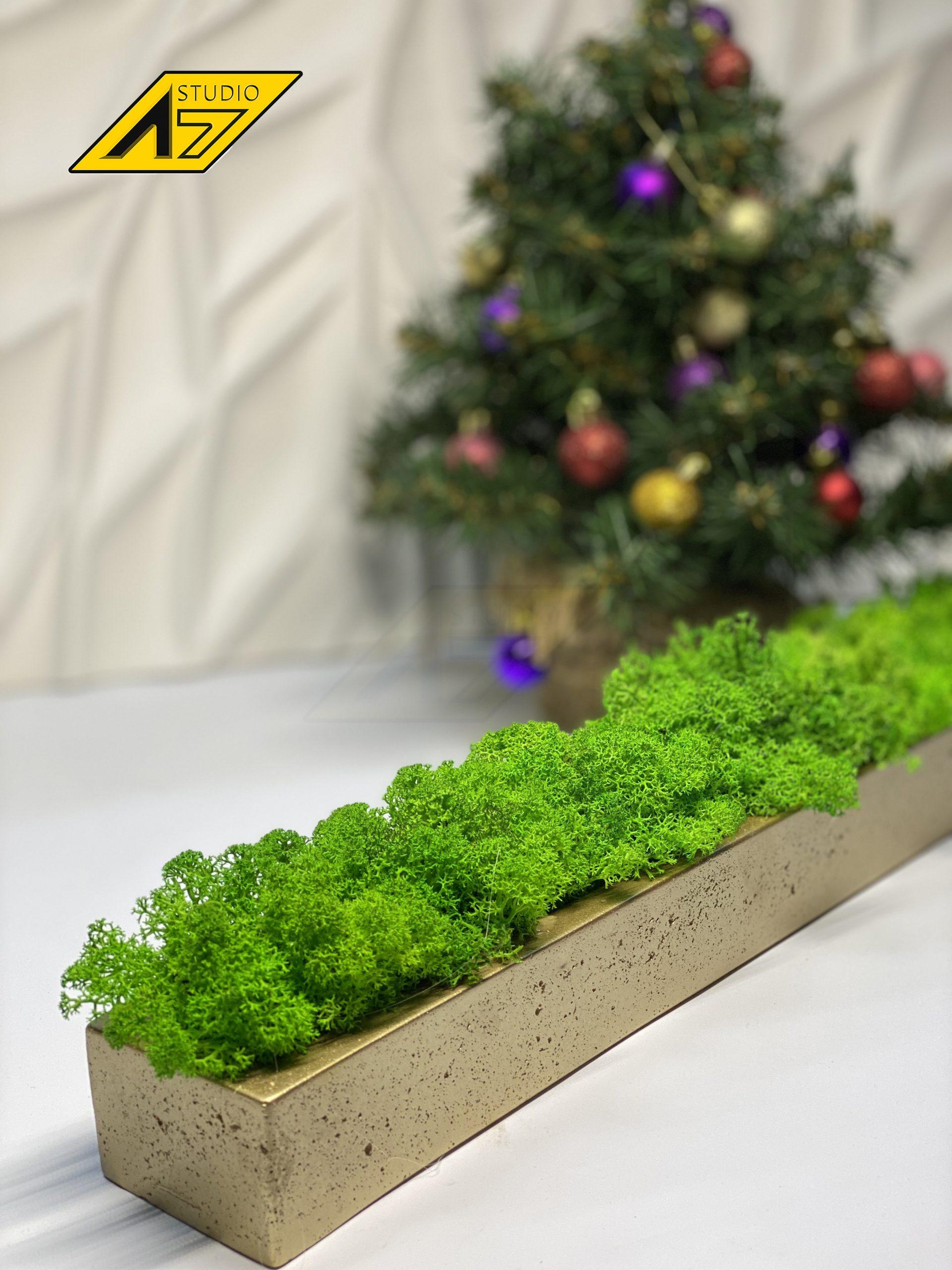 Кашпо из гипса с скандинавским мхом ягель Gray 500х70х50мм