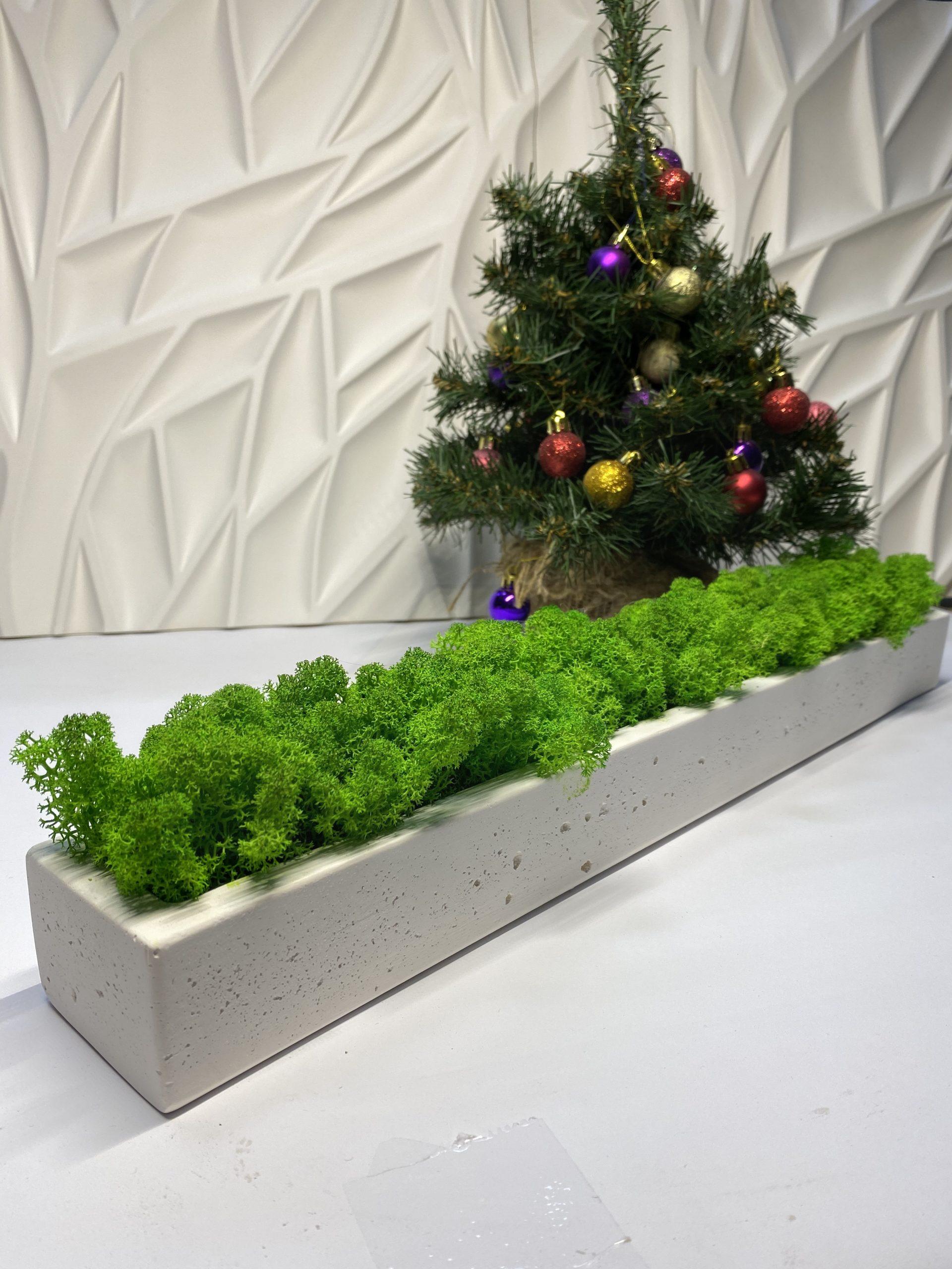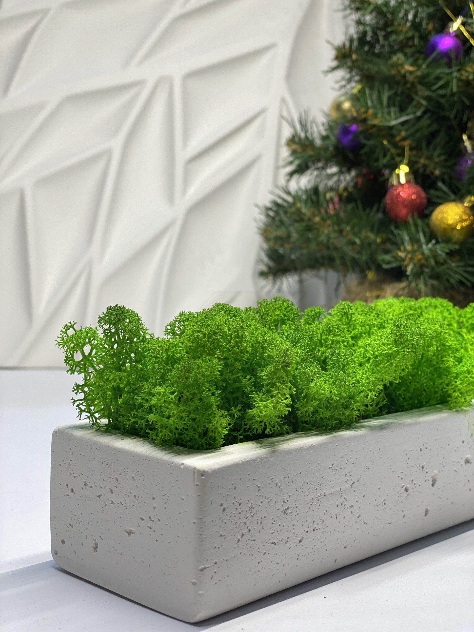 Кашпо из гипса с скандинавским мхом ягель Gray 500х70х50мм